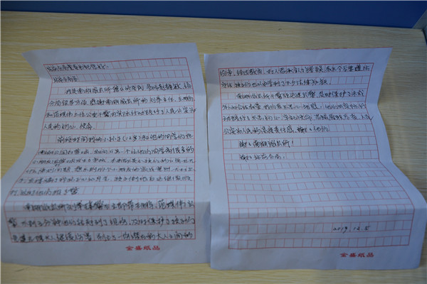 “人民警察为人民,警察人民一条心。为了我们的安危,你们付出了太多太多,就让我代表家人衷心感谢三位人民好民警,为我们及时化解因口角引起的矛盾纠纷,辛苦你们了,谢谢你们!”这是南湖派出所辖区居民赵女士,致站前公安分局党组领导的一封表扬信中的内容。