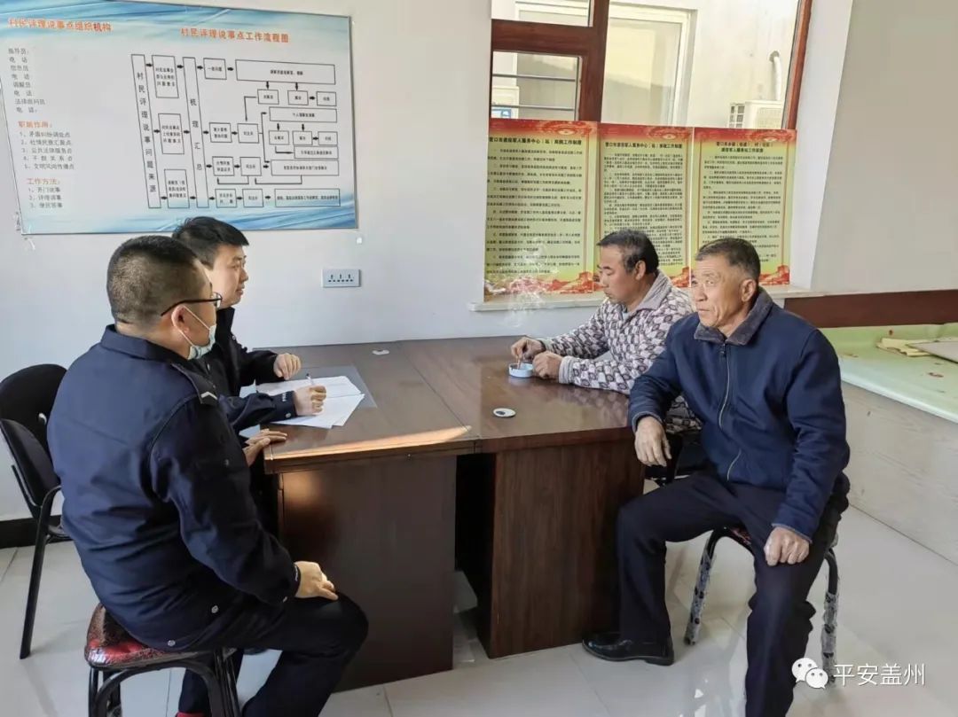为深入开展矛盾纠纷排查化解工作,切实做到矛盾纠纷发现在早、处置在小,实现“小矛盾不出村、大矛盾不出镇”的工作目标,盖州市公安局徐屯派出所围绕“矛盾共调”这一思路,根据民情、社情,借助镇司法、民政、综合执法等部门力量,以民警、辅警、村干部、老党员为骨干,建立辐射全辖区的警民调解组织,逐步探索出联合调解、亲情感化等经验做法,成功化解了23起矛盾纠纷,收到群众赠送锦旗一面。