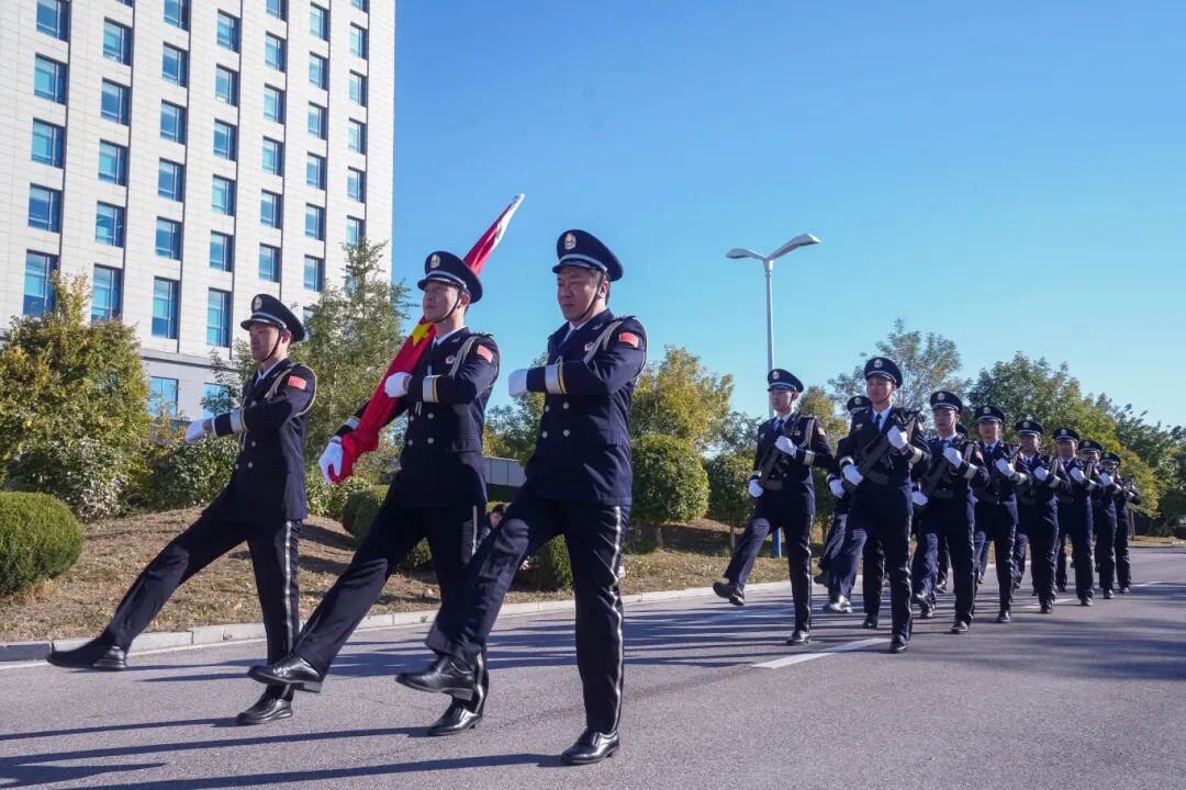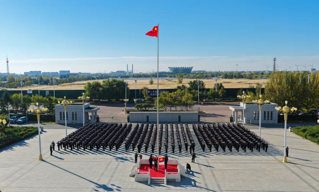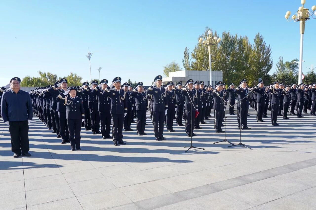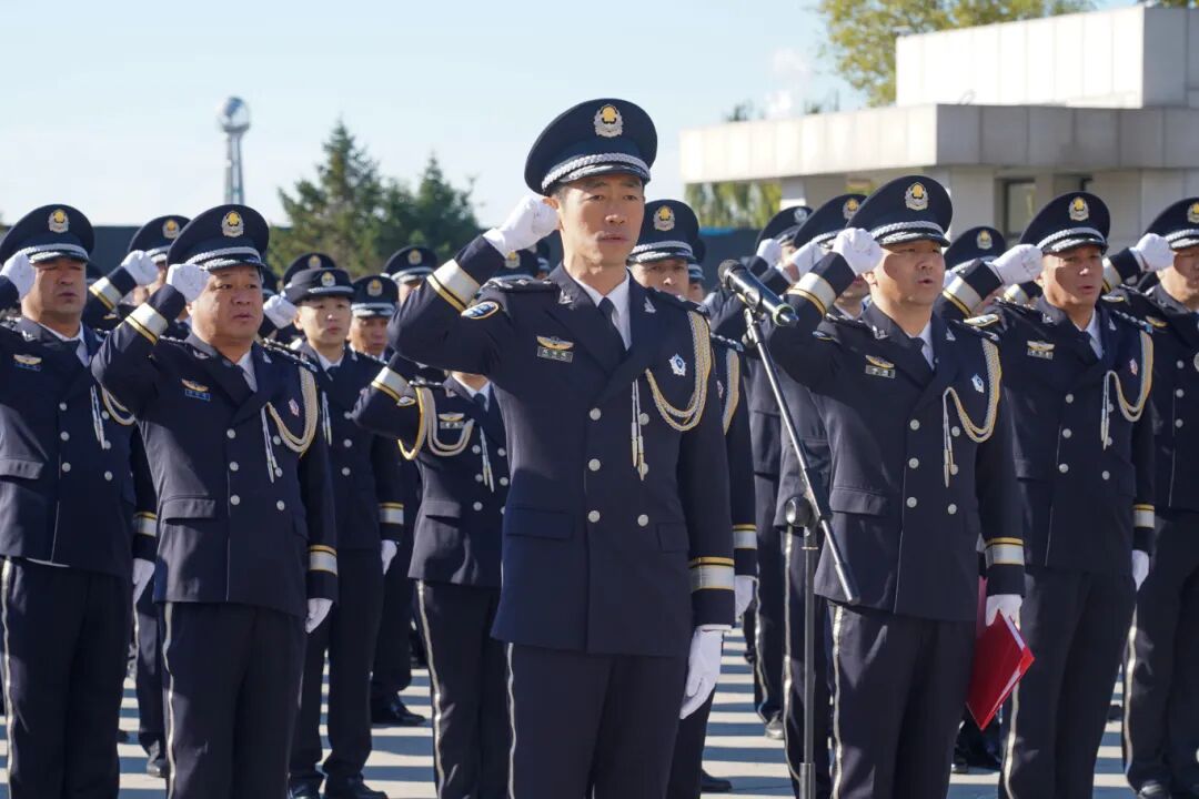 秋高气爽,朝阳初升。参加仪式的全体民警身着警礼服,精神抖擞、整齐站定,以最严整的警容、最昂扬的姿态,等待着那个庄严时刻的到来。
