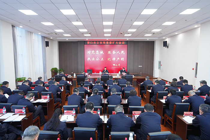 3月20日,营口市公安局召开党委扩大会议,传达学习习近平总书记在全国两会期间的重要讲话精神和全国两会精神,研究市局贯彻落实意见。副市长、市公安局党委书记、局长赵涵斌主持会议并讲话。