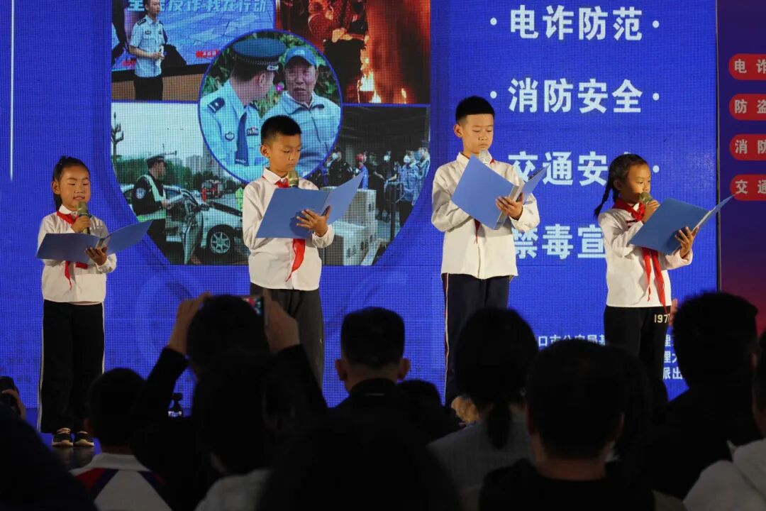紧接着,一群可爱的“萌娃安全宣传员”登上舞台。孩子们精神饱满、毫不怯场,用稚嫩而响亮的声音朗诵安全主题诗歌,表达对警察叔叔、阿姨的敬意与对平安生活的向往。纯真的表演深深打动了现场观众,为整场活动注入了温暖与活力。