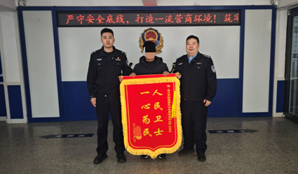 近日,鲅鱼圈区公安局海东派出所接到居民紧急求助,称自家爱犬不慎走失。民警辅警迅速行动,借助社区养犬互助群发动群众共同寻找,很快锁定小狗的位置。认领过程虽有小插曲,但民警辅警耐心沟通、积极协调,最终让小狗平安回家。事后,失主专程送来写有“人民卫士 一心为民”的锦旗以表感谢。