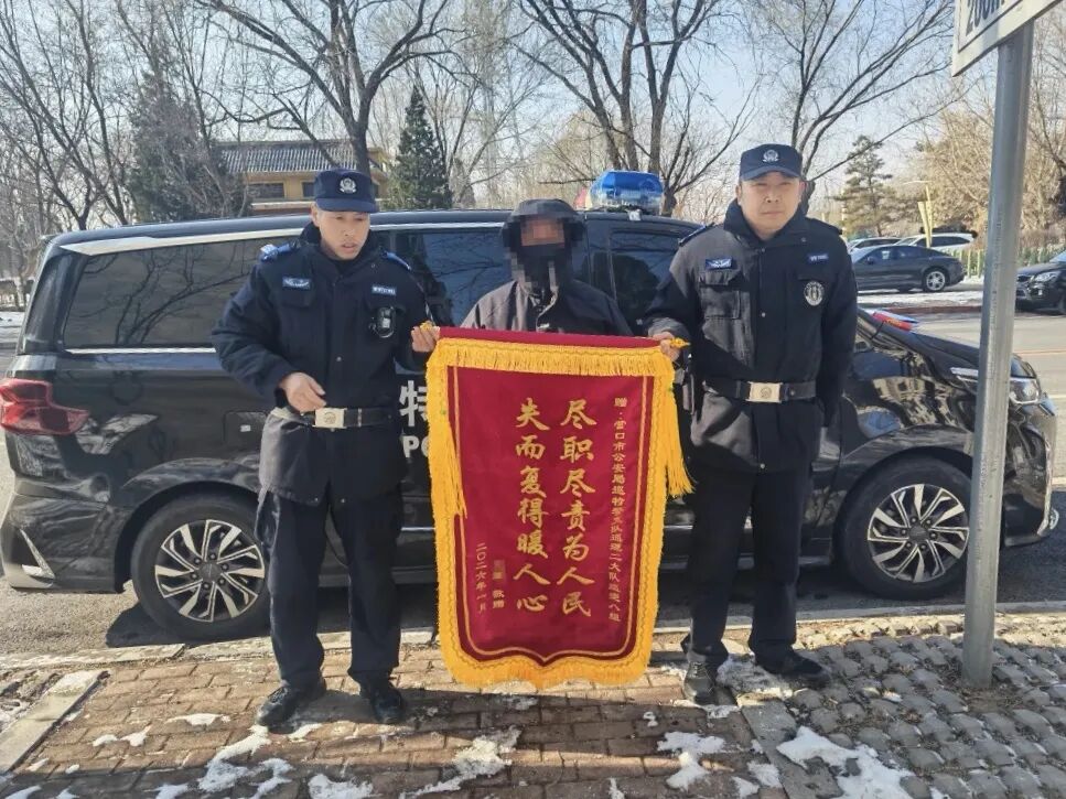 营口市公安局巡特警支队的民警辅警在日常巡逻中,总是多一份细心、多一句关心。日前,有群众在商场捡到装有重要证件和财物的背包,巡逻队员迅速核查联系,将背包完整交还失主。失主激动地说:“你们真是老百姓的定心丸!”
