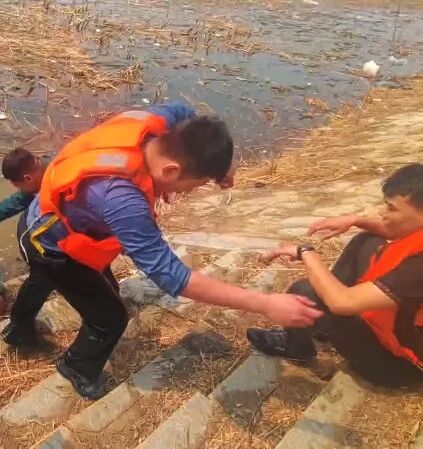 来不及多想,王闯和朱泳铭迅速穿戴好救生衣,纵身跃入河中。入水的瞬间,冰冷的河水浸透全身,寒意直刺骨髓。两人咬紧牙关,奋力向老人的方向游去。