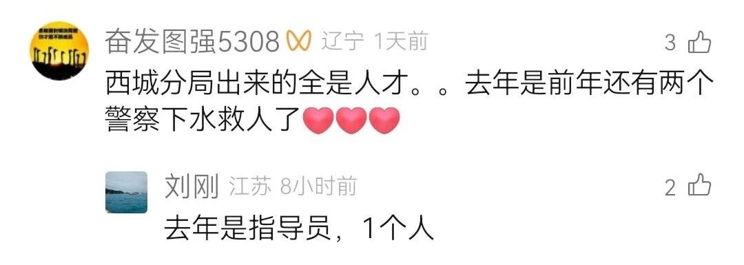 2024 年 5 月,几乎是在同一片水域,上演了同样惊险一幕。那天,刚刚值完夜班回家的西城派出所教导员李振波路过河边,看到一名体型壮硕的男子在水中挣扎。他没有丝毫犹豫,脱下衣服,纵身一跃,在百米宽的河面上展开了一场生死营救。那一次,李振波因体力严重透支,在将体型几乎是两倍的落水者救上岸后,一个趔趄险些摔倒的画面,让无数网友心疼落泪。事后他只说了一句话:“我是警察,看见群众落水,就一个念头,必须下水救人。”