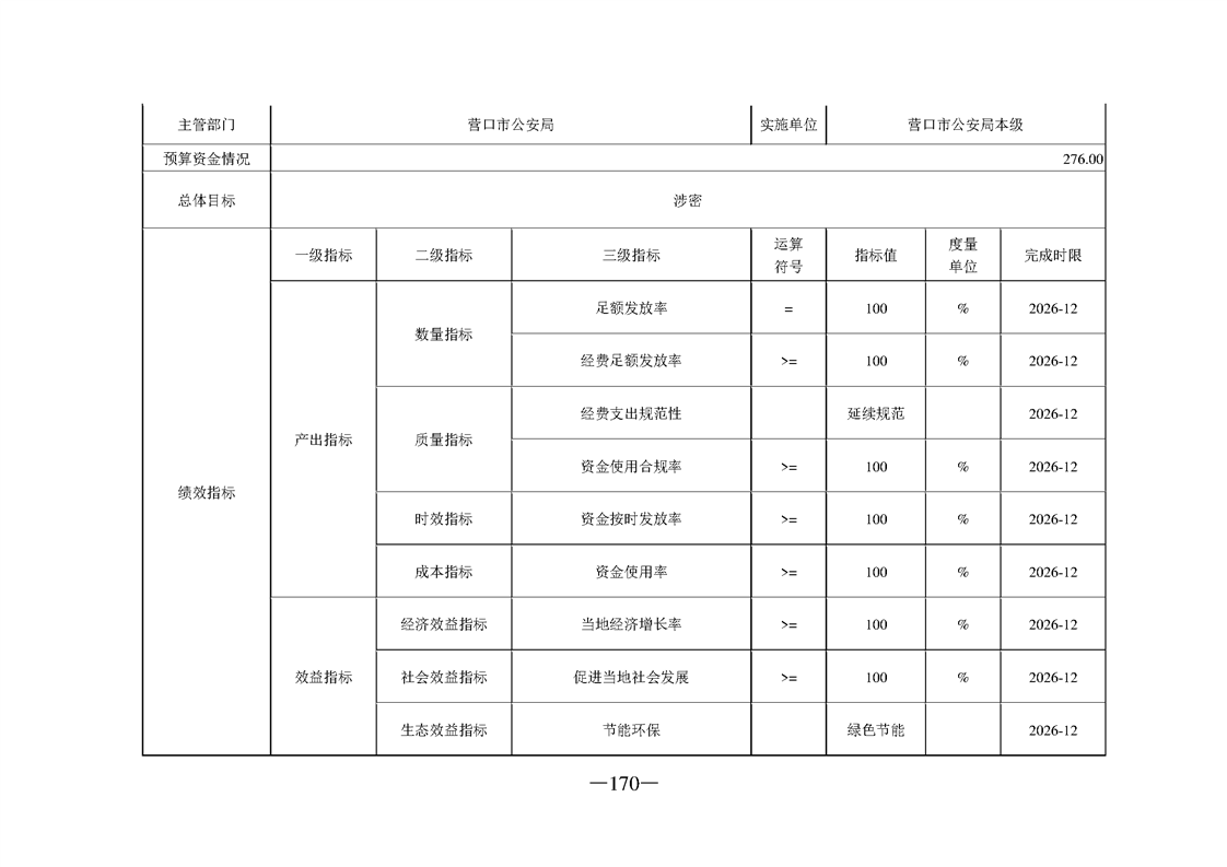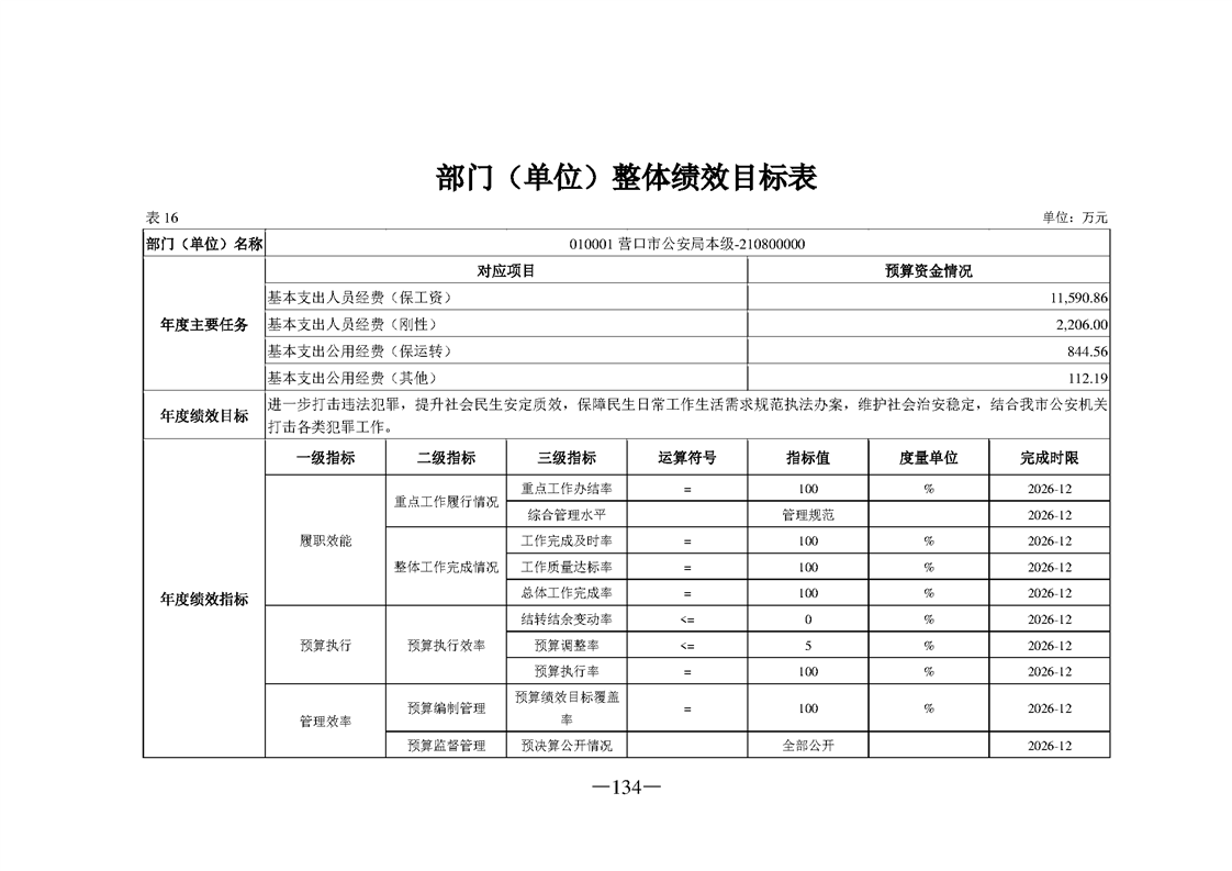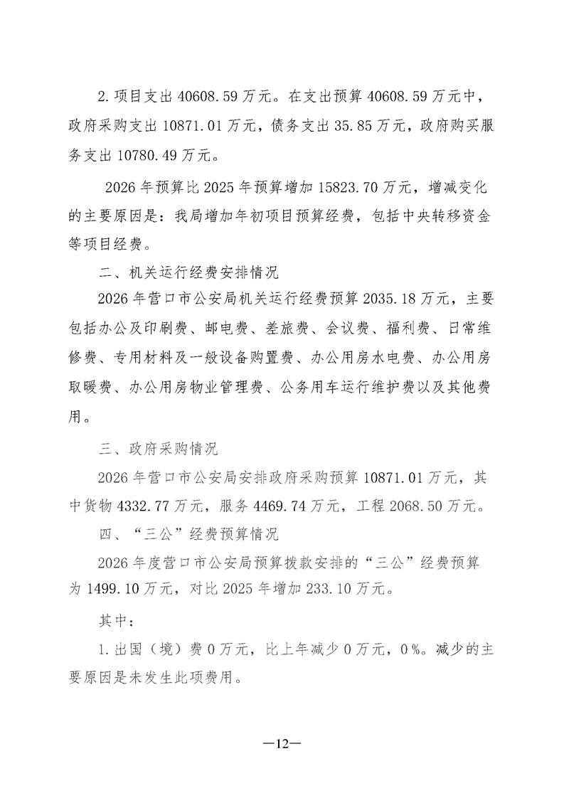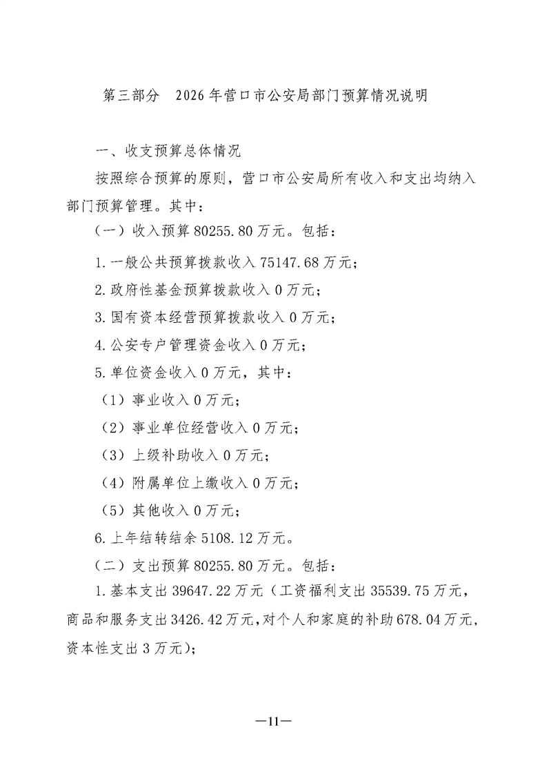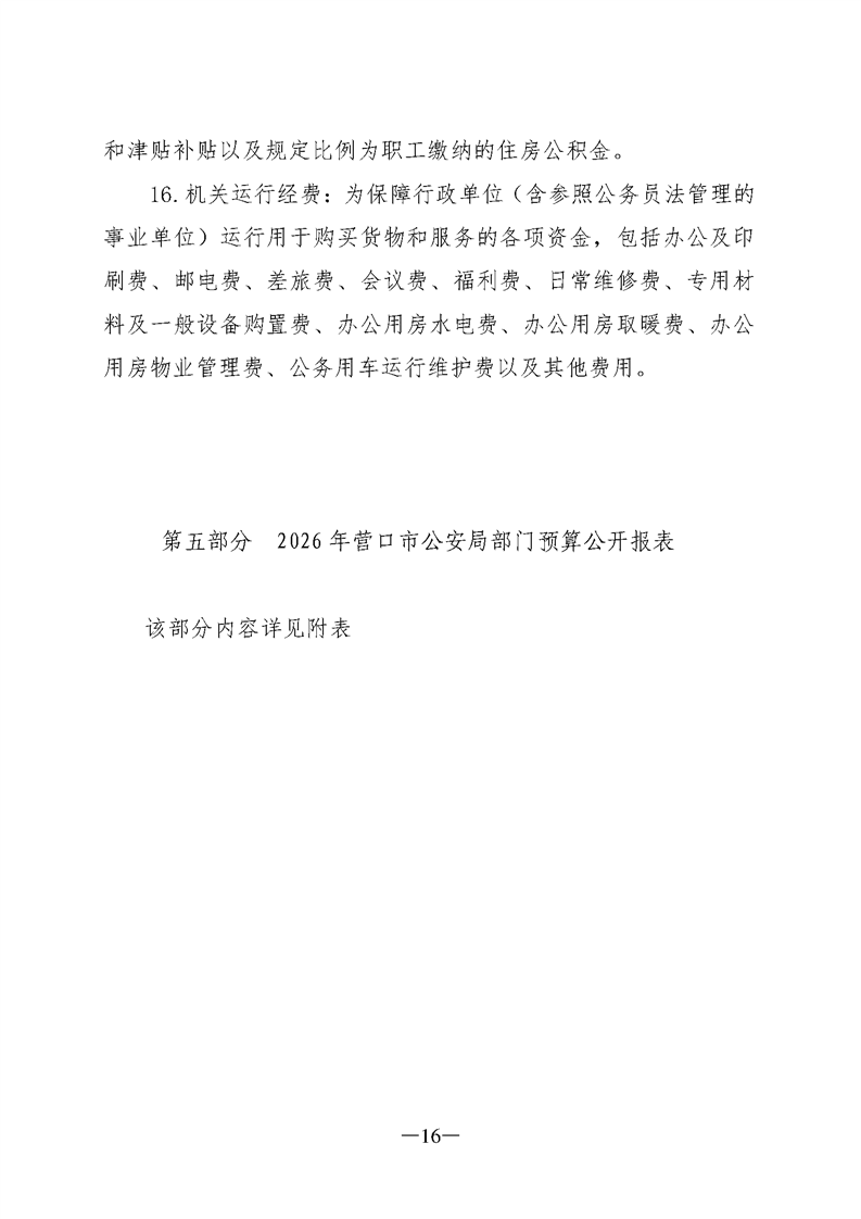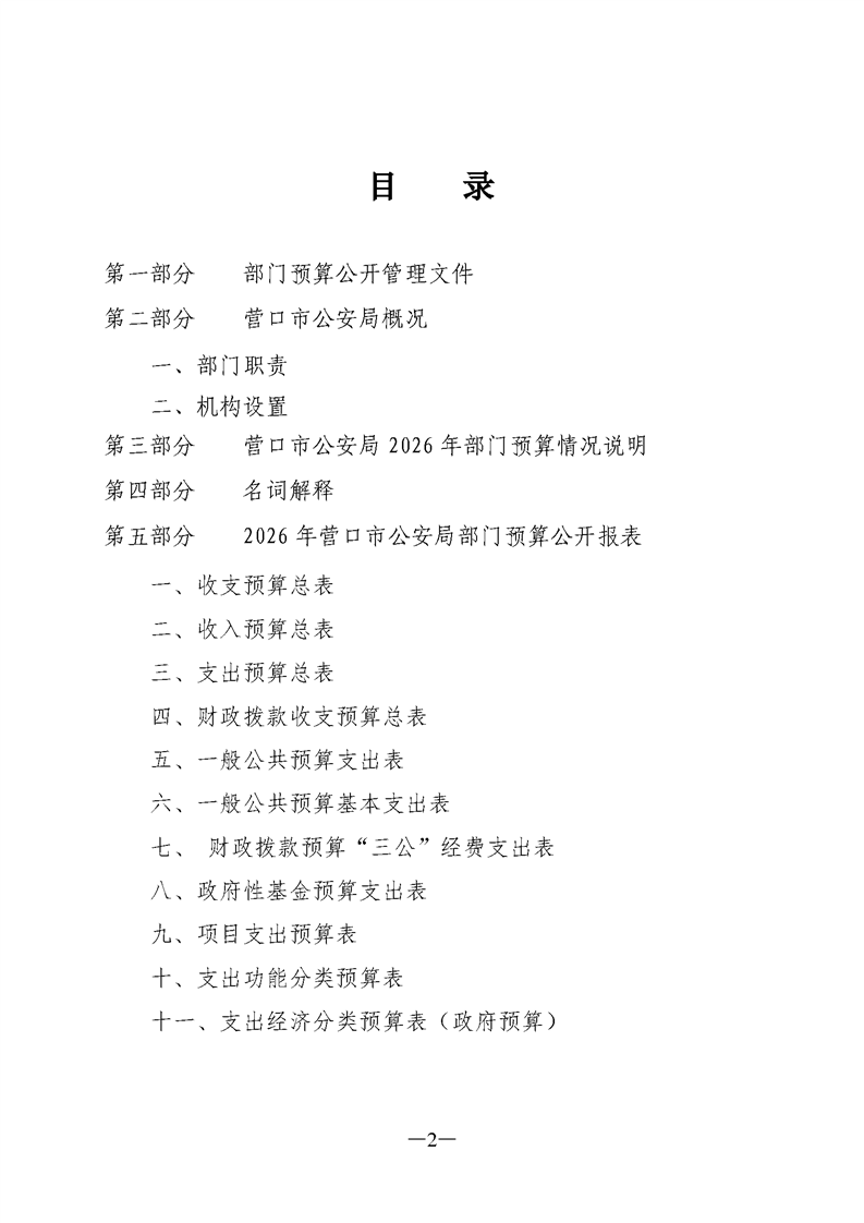 营口市公安局2026年度部门预算