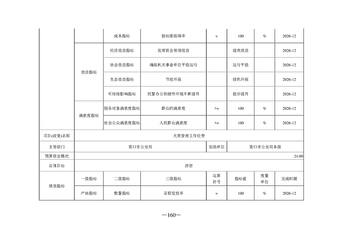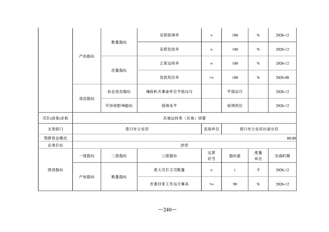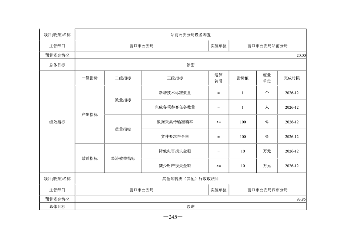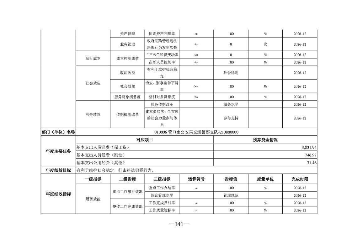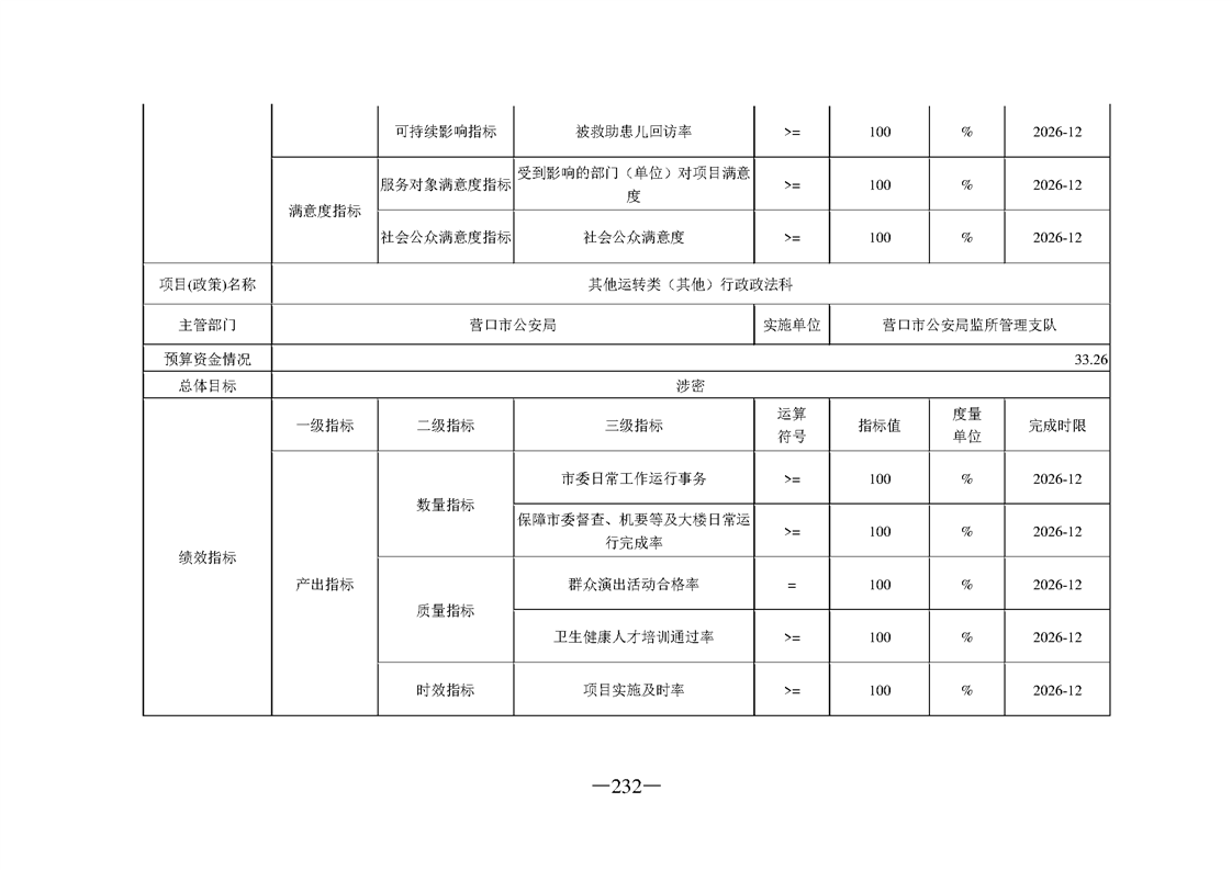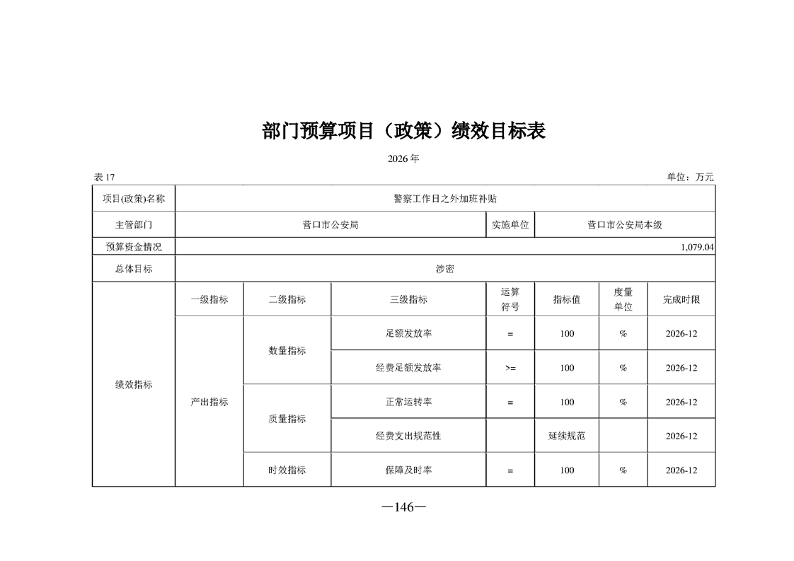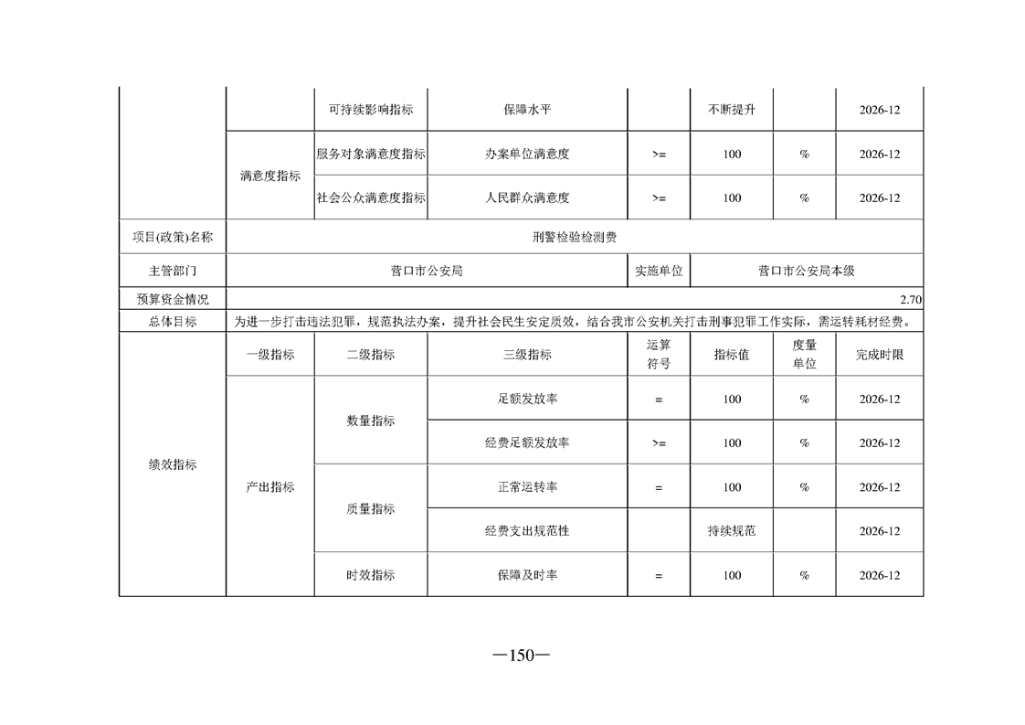 营口市公安局2026年度部门预算