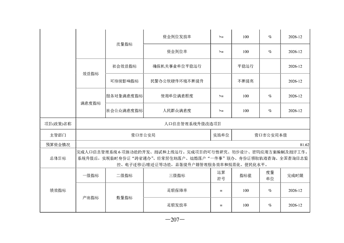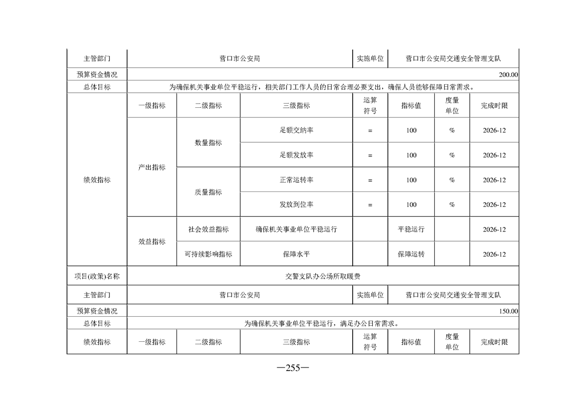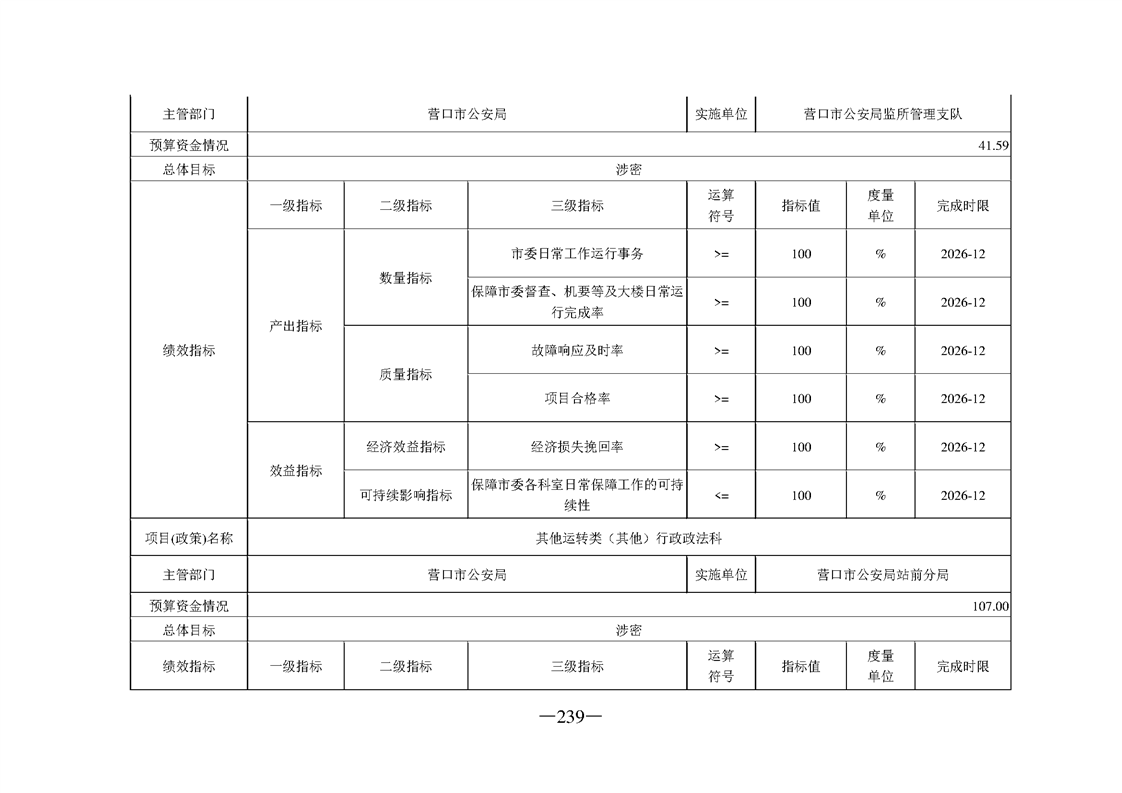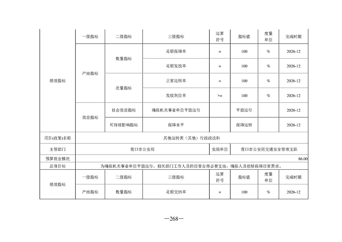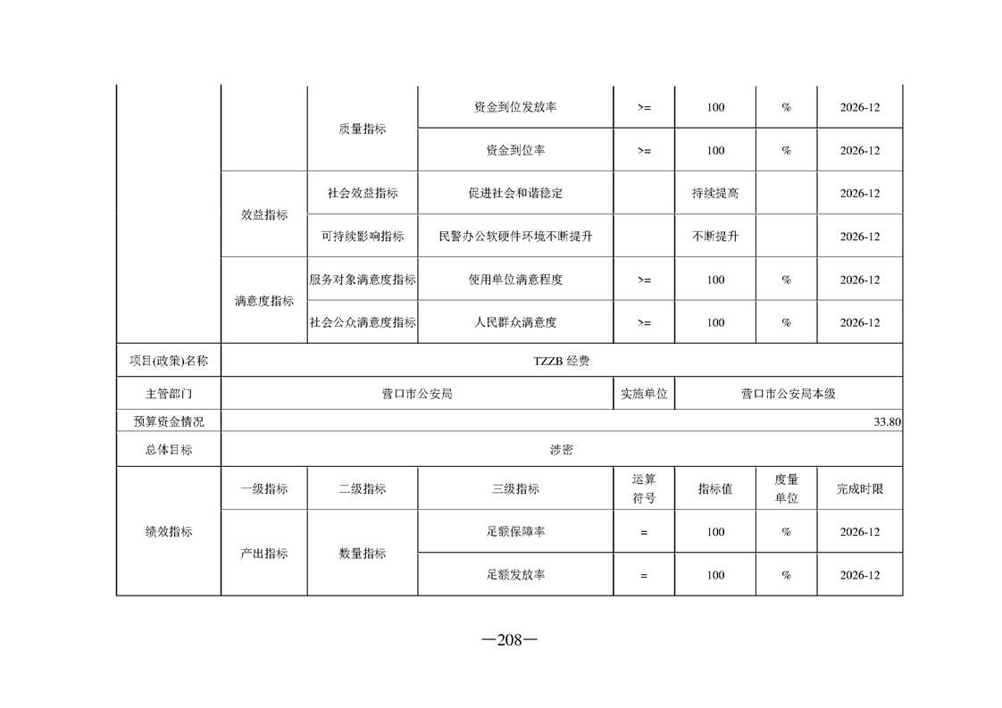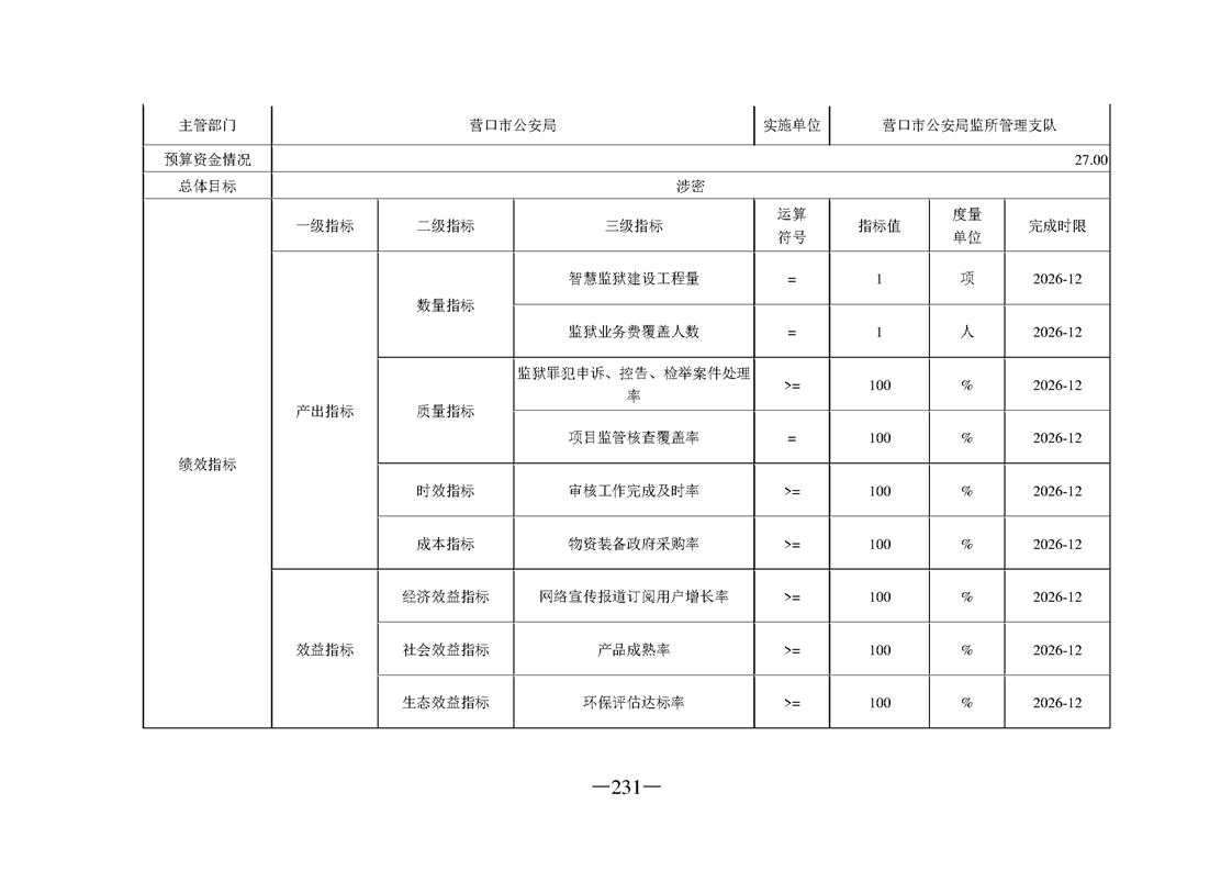营口市公安局2026年度部门预算