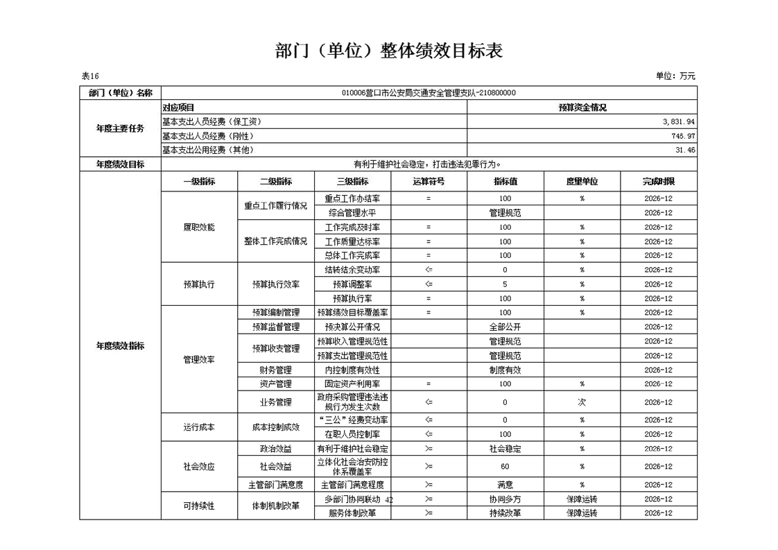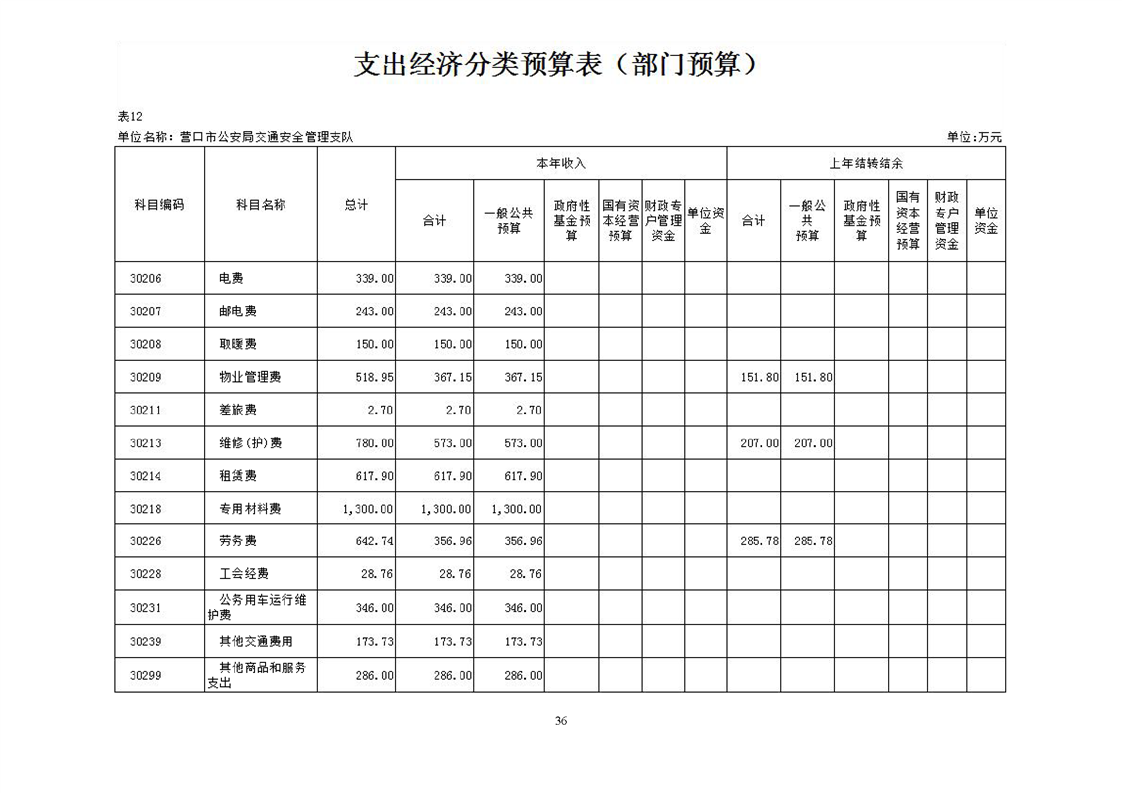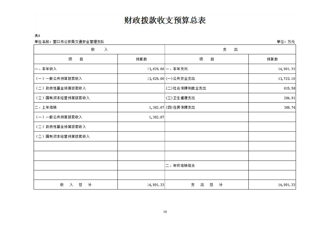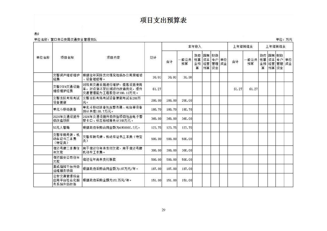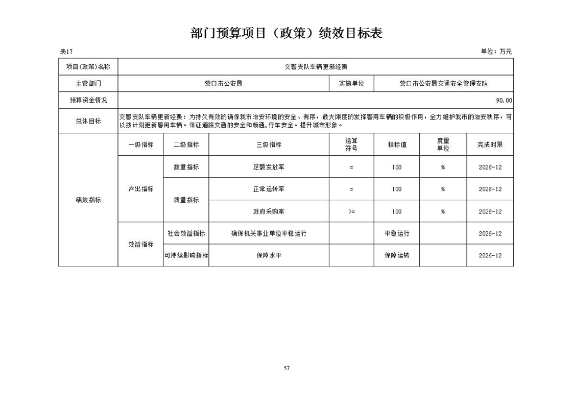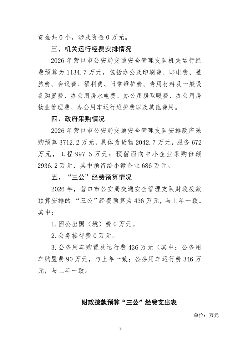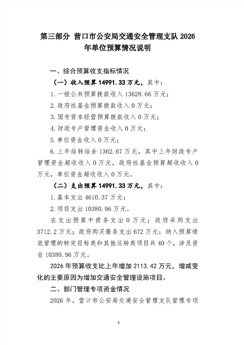 营口市公安局交通安全管理支队2026年度单位预算