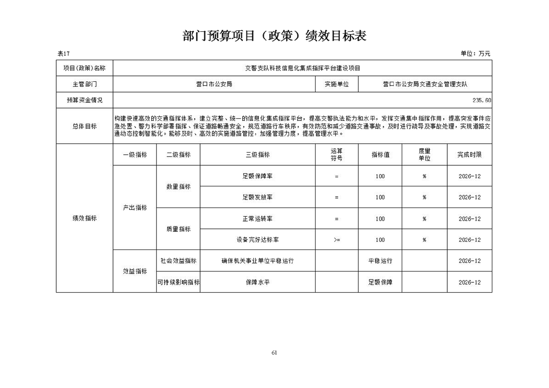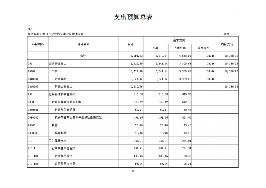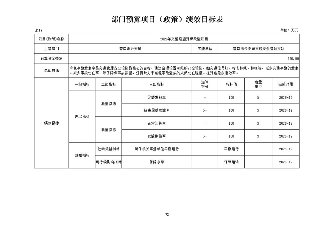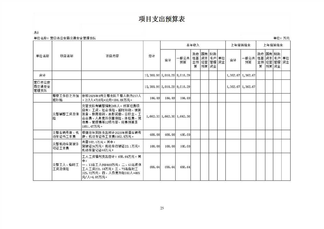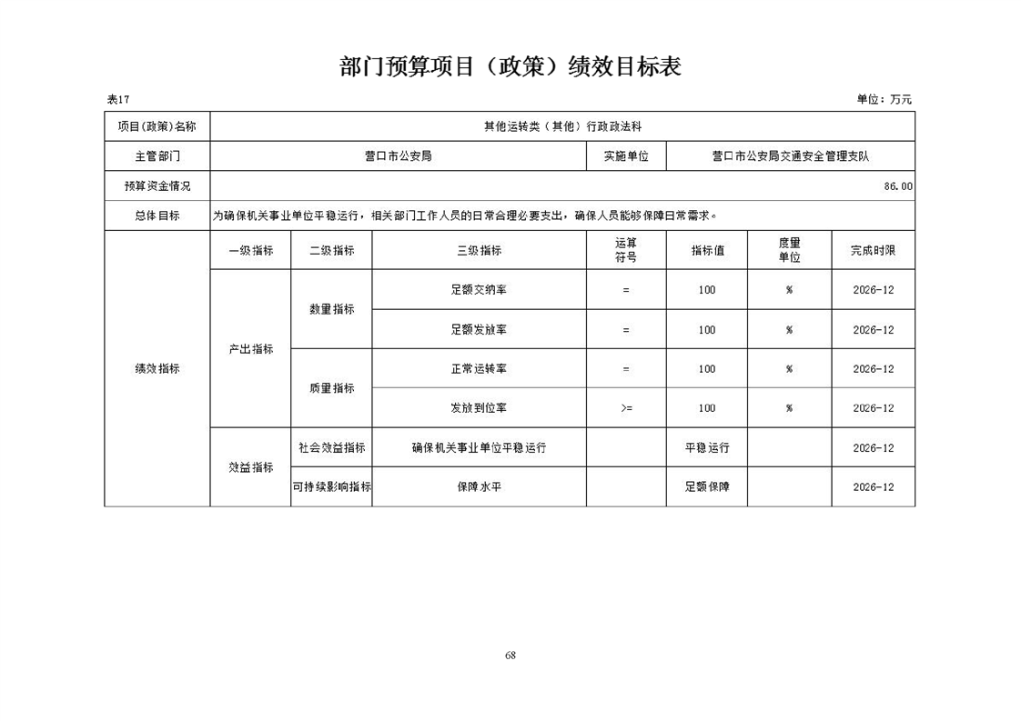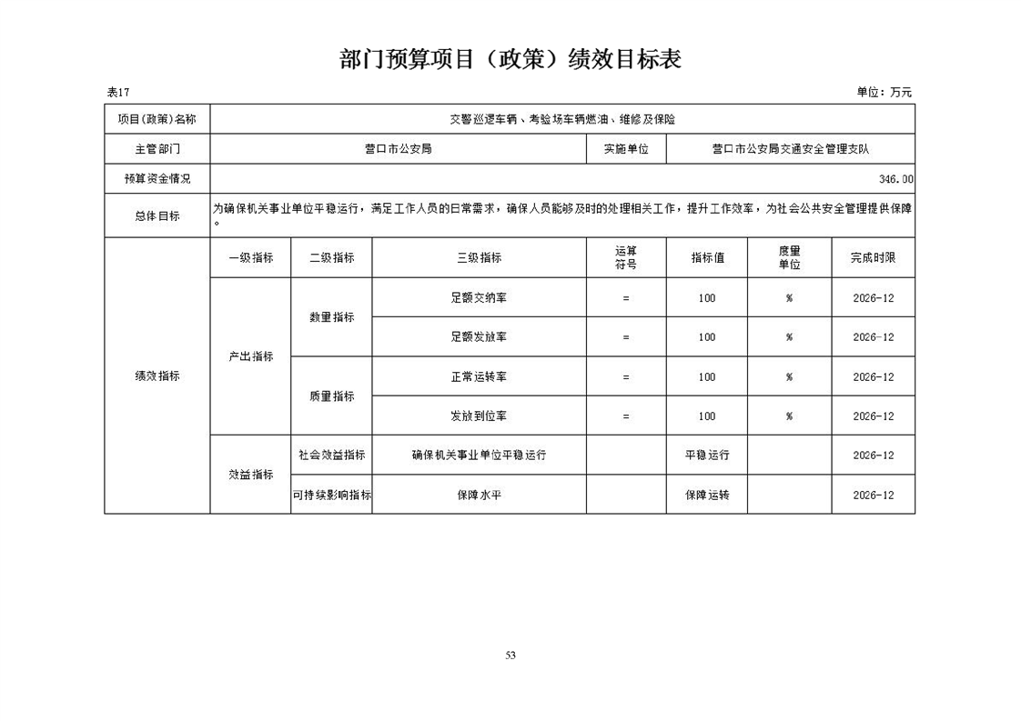 营口市公安局交通安全管理支队2026年度单位预算