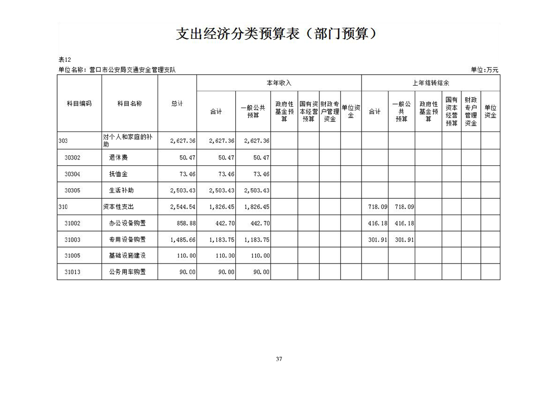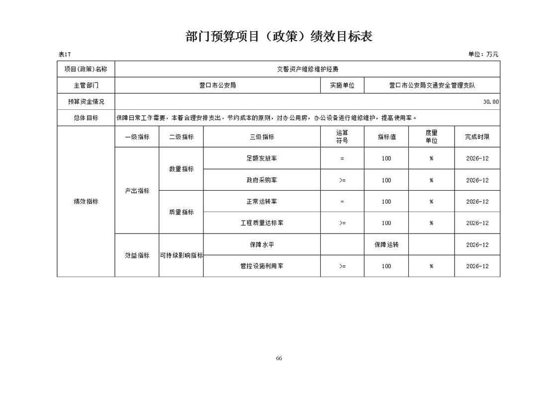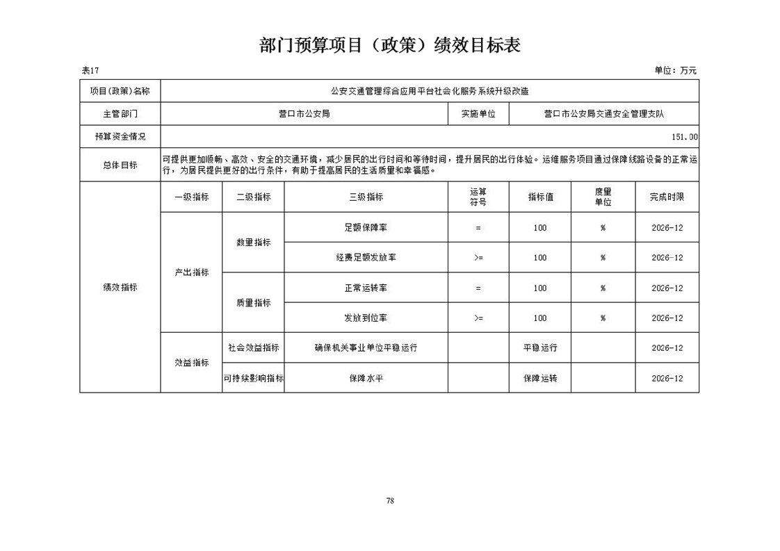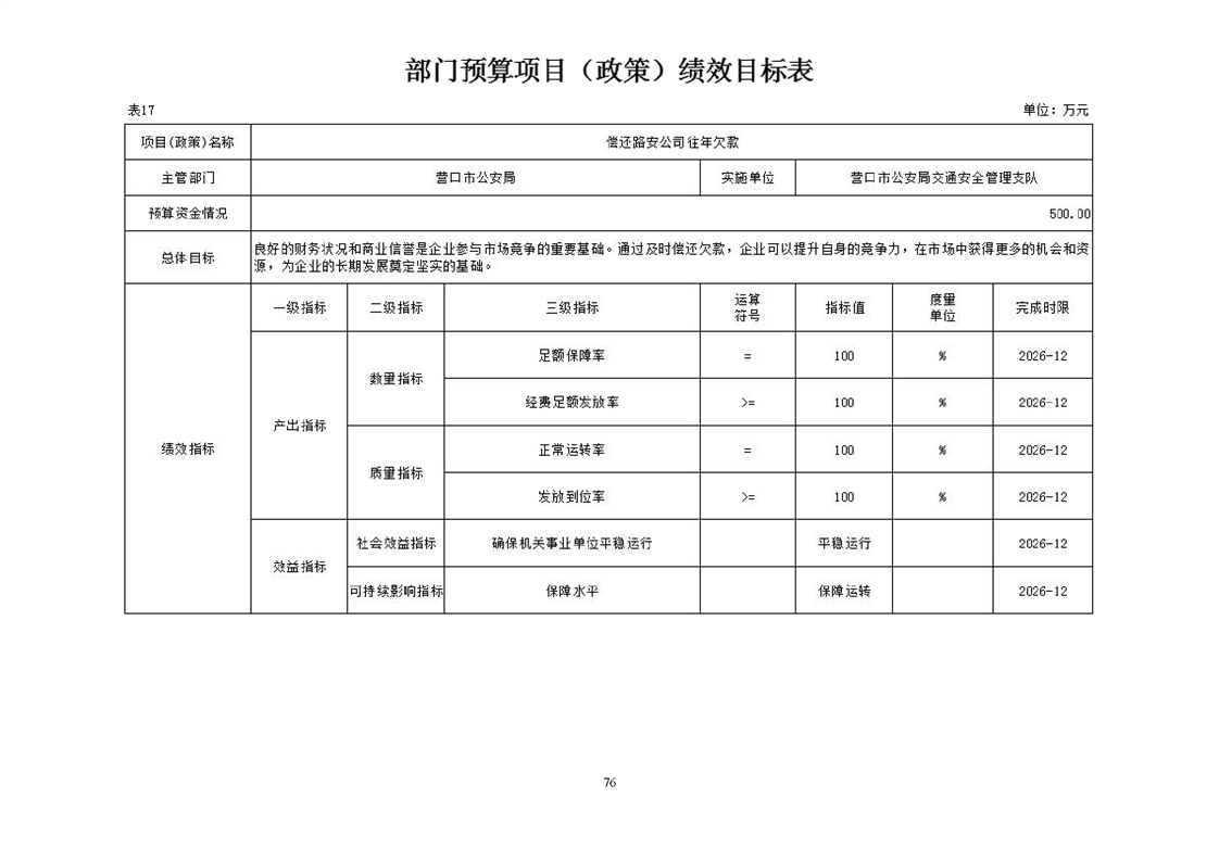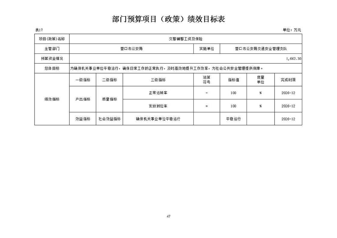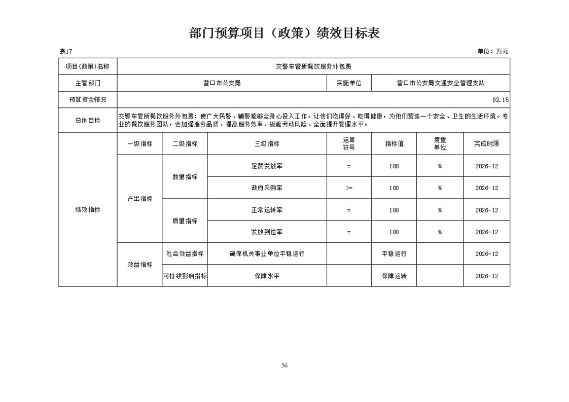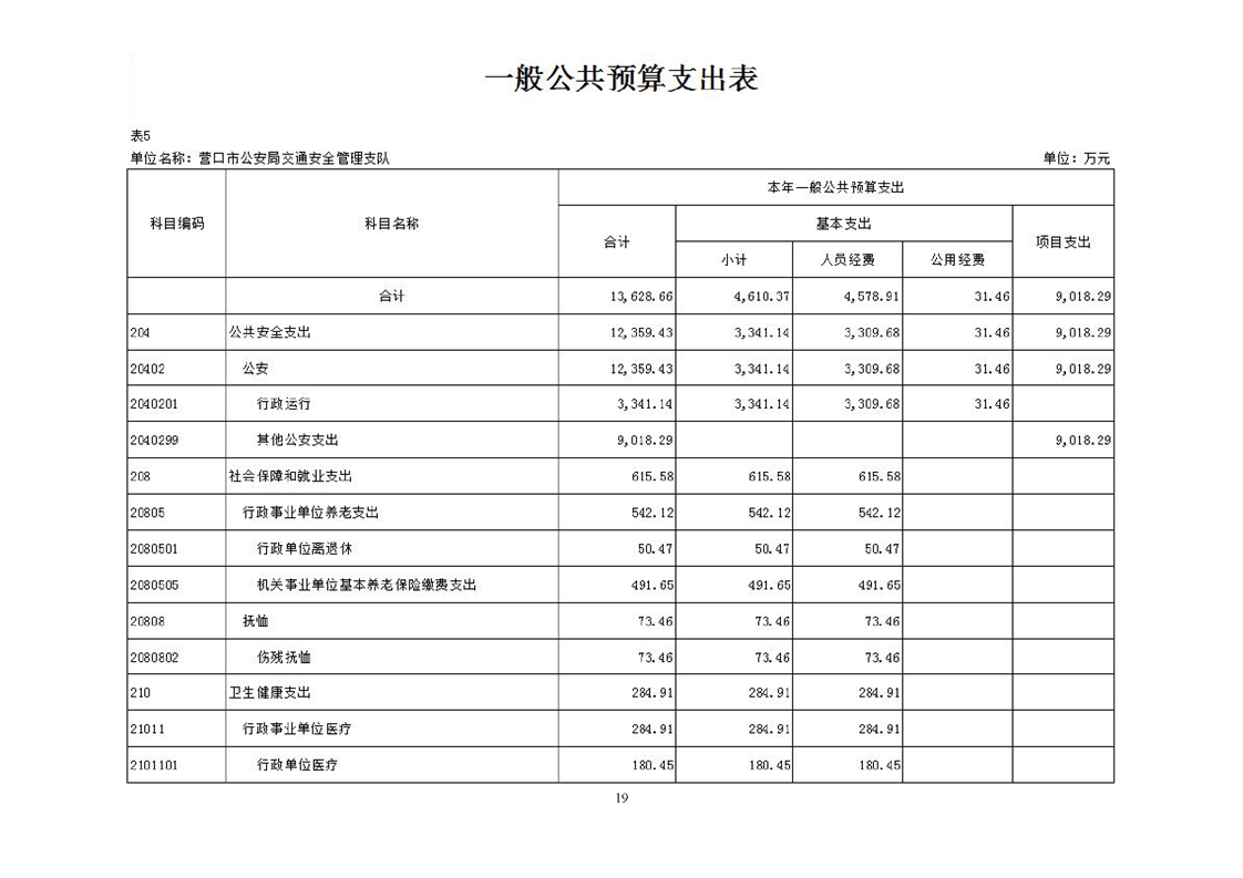 营口市公安局交通安全管理支队2026年度单位预算