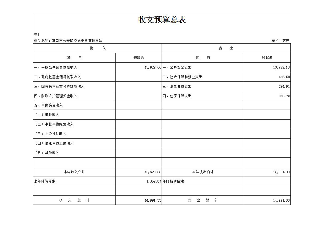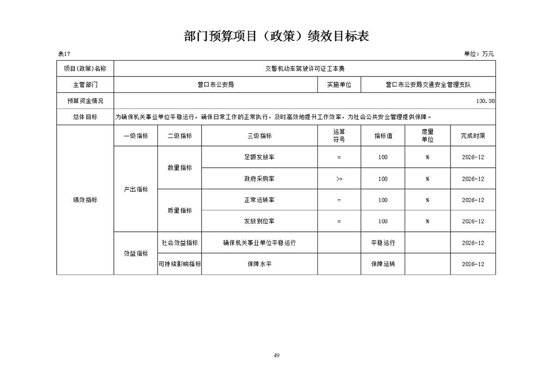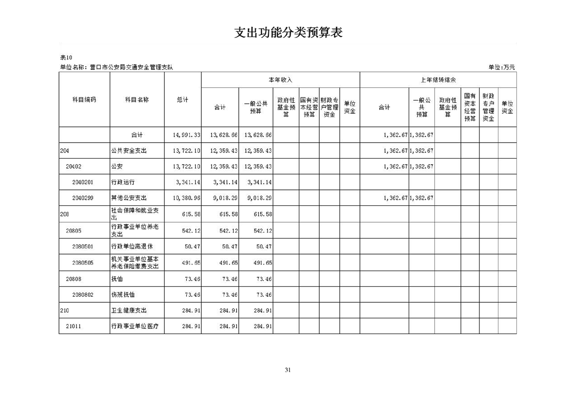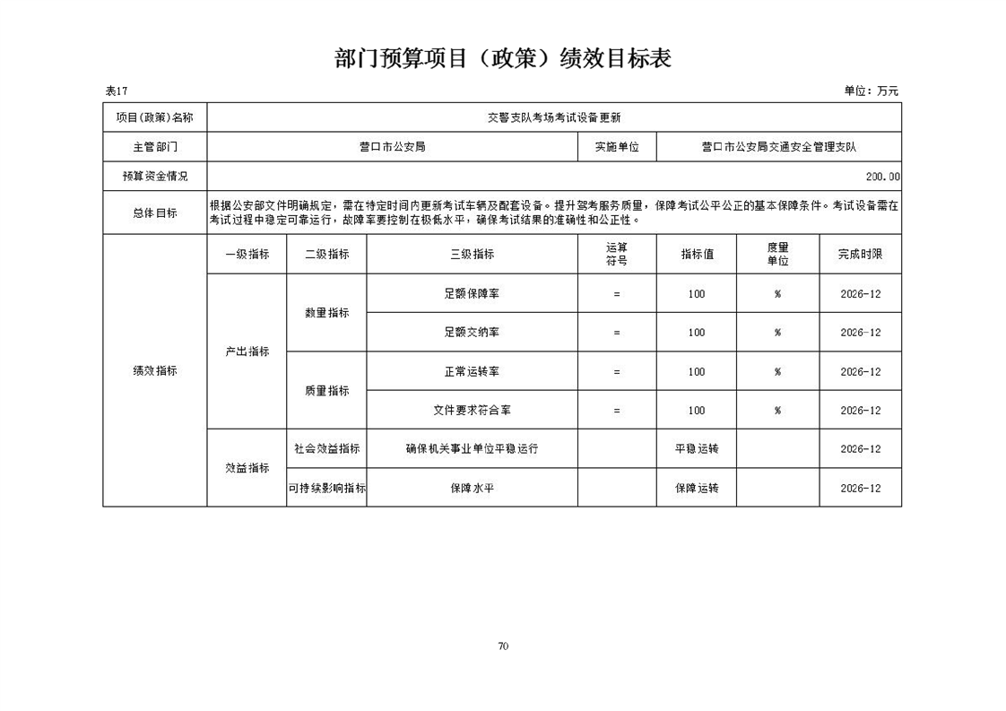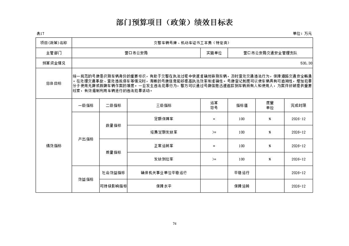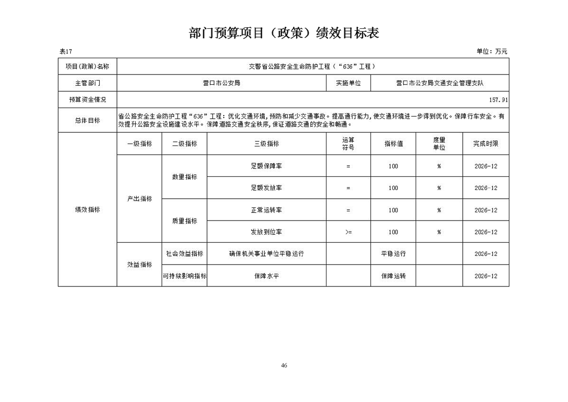 营口市公安局交通安全管理支队2026年度单位预算
