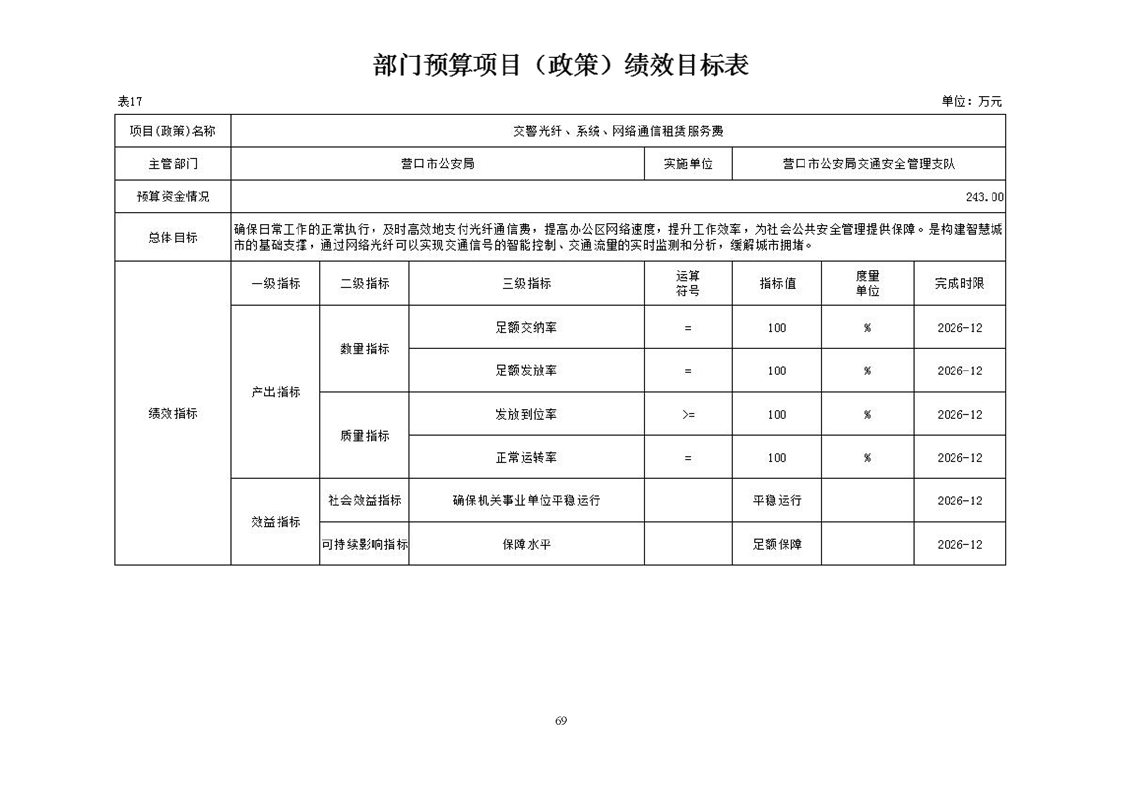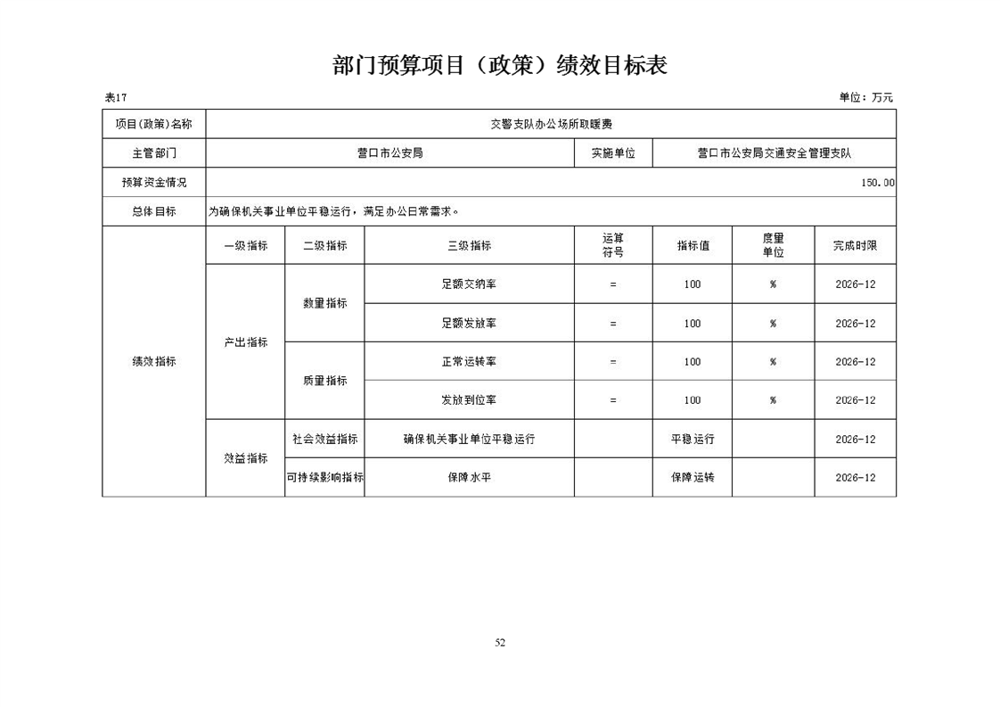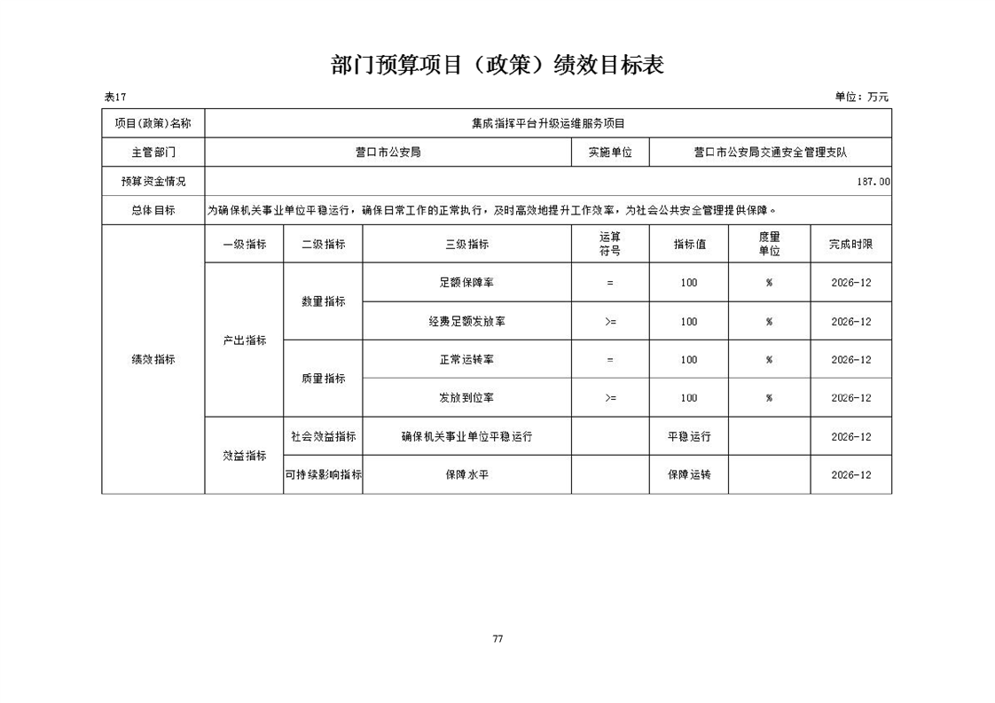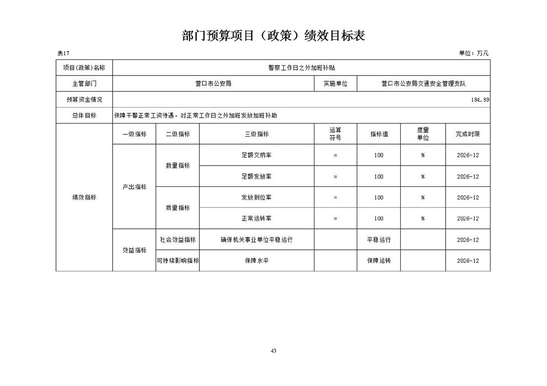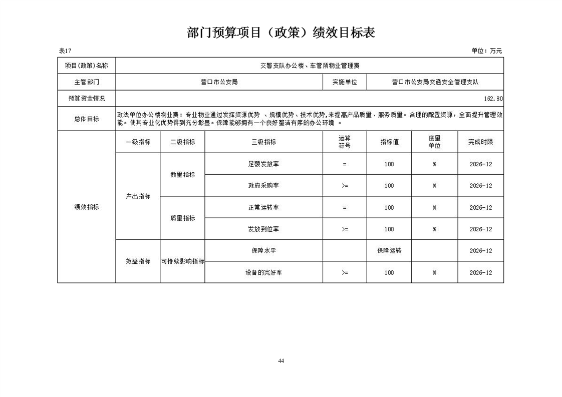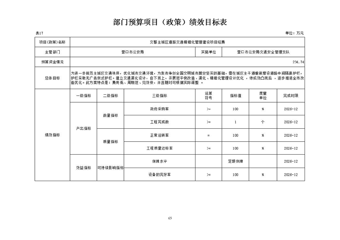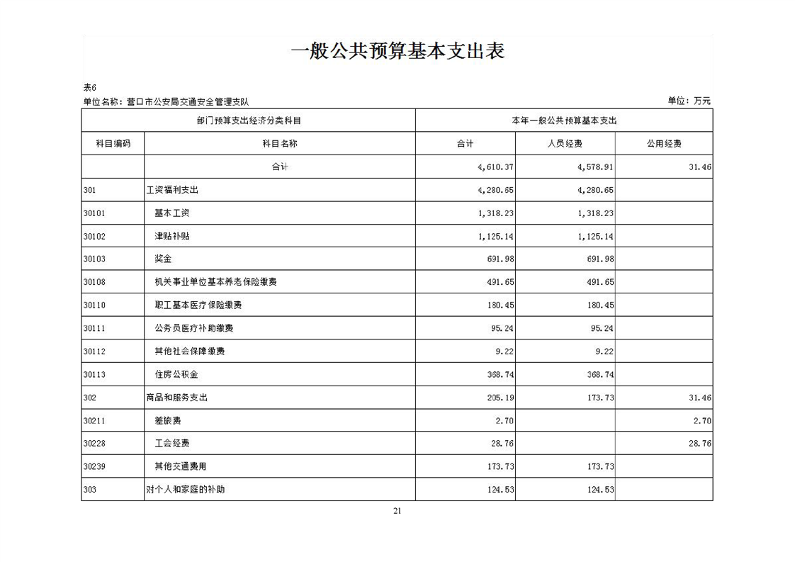 营口市公安局交通安全管理支队2026年度单位预算